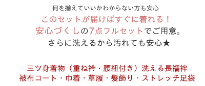 【被布コート】 身丈:49cm 【草 履】約18cm 素材 ポリエステル100% おすすめ関連商品 ▼長襦袢を着る前に、汗取りのために肌着・裾除けセットもご用意しています。