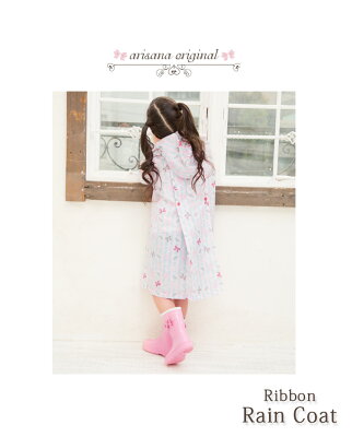 レインコート キッズ ランドセル対応 女の子 おしゃれ かわいい ジュニア 子供 こども 小学生 撥水 100 120 130 140 150 cm 通園 通学 リボン柄 ブルー ピンク ラベンダー メール便可 アリサナ arisana