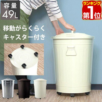 1年保証 ゴミ箱 ふた付き 49L キャスター付き バケツ型 ダストボックス ごみ箱 くず箱 45Lゴミ袋 対応 45リットル 大型 臭い防止 インテリア キッチン おしゃれ かわいい レトロ クラシック アメリカン 雑貨 北欧 バケツ型スチールごみ箱 ●[送料無料]
