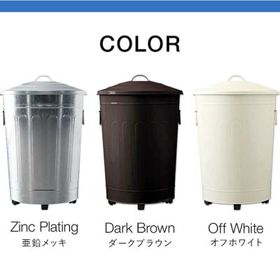 カラー: ・亜鉛メッキ ・ダークブラウン ・オフホワイト サイズ: (約)最大Φ40.5cm×高さ61.5cm(キャスター、フタ含む) 容量: 49L 材質: ・ダークブラウン / オフホワイト スチール、他 ・亜鉛メッキ 亜鉛メッキ鋼板、他 重量: (約)2.9kg [こんな商品をお探しの方に] ゴミ箱 ごみ箱 塵箱 ダストボックス ペール くず箱 屑箱 屑入れ くず入れ ごみ箱 箱 芥箱 おしゃれ かわいい インテリア リビング キッチン ベランダ バルコニー 庭 ガーデニング ナチュラル 北欧 大容量 高さ61.5cm 45Lごみ袋対応 におい 臭わない キャスター ふた付き フタ付き 蓋付き スリム スチール製 スチールペール クラシック レトロ ビンテージ アンティーク アメリカン アイボリー ホワイト 白 ブラウン 茶色 亜鉛メッキ ブリキ調 トタン調 インテリア・寝具・収納 ゴミ箱 丸型